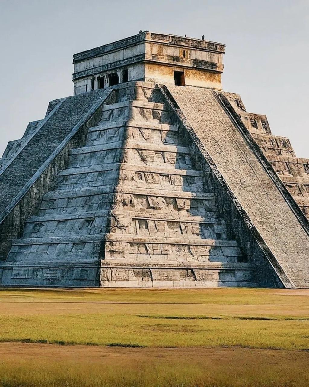 ⭐Description: El Castillo, or the Temple of Kukulcán, is the iconic pyramid of the Maya city Chichén Itzá. It aligns with the Maya calendar, featuring 365 steps and a shadow phenomenon resembling a serpent during the equinoxes. El Castillo—in Spanish, “the castle”—looms at the center of Chichén Itzá, a 79-foot pyramid of stone. Also known as the Pyramid of Kukulkán, the structure embodies Mayan myth along with natural astronomical cycles. The phenomenon that El Castillo is famous for occurs twice each year, at the spring and fall equinoxes . (In fact, the effect is viewable for a week before and after each equinox.) As the equinox sun sets, a play of light and shadow creates the appearance of a snake that gradually undulates down the stairway of the pyramid. This diamond-backed snake is composed of seven or so triangular shadows, cast by the stepped terraces of the pyramid. The sinking sun seems to give life to the sinuous shadows, which make a decidedly snaky pattern on their way down the stairs. Thousands of people gather to see this phenomenon, which may have been viewed by the ancient Maya as the manifestation of the god Kukulkán, the feathered serpent. But was the effect intentional, or merely a happy accident? It isn’t possible to read the minds of the Maya who built the structure in roughly AD 1000, but various signs suggest the effect was deliberately created. The most obvious of those signs are the large snake-head sculptures carved into the base of the stairway. As the shadow moves down the stairway, the body of the snake ultimately unites with one of these enormous heads.